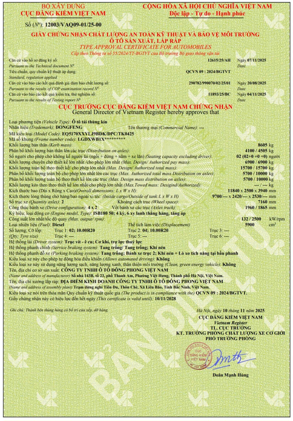 Ưu điểm xe sản xuất theo tiêu chuẩn quốc tế miễn kiểm tra chất lượng đối với các quốc gia nhập khẩu xe Dongfeng.