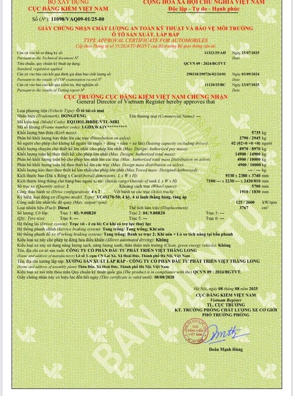 XE TẢI DONGFENG D8 NHẬP KHẨU 2025